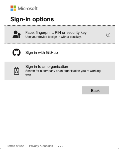 Click Azure Active Directory, but do not sign in with your own company tenant.